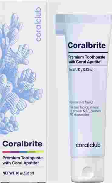 Coralbrite — одна из первых зубных паст с использованием натурального природного источника гидроксиапатита, ископаемого коралла (Fossil Coral) с японского острова Йонагуни (Yonaguni Island).