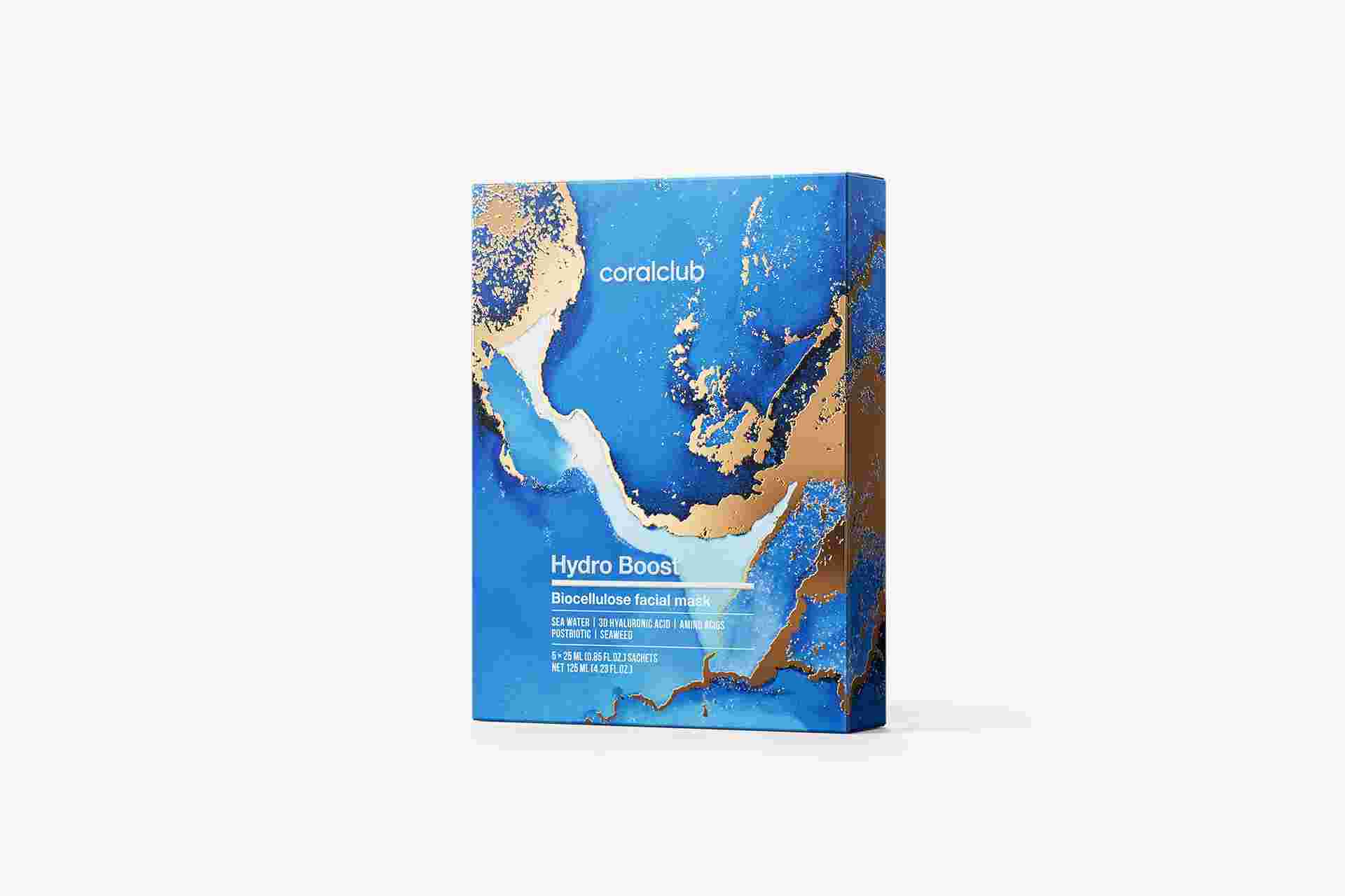 Биоцеллюлозная маска с морской водой, с 3D гиалуроновой кислотой, морскими водорослями и метабиотиком.